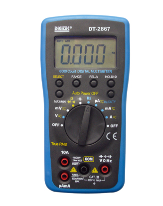 · DC Current: 600/6000µA/60/600mA ±0.5%, 6A/10A ±0.8%
